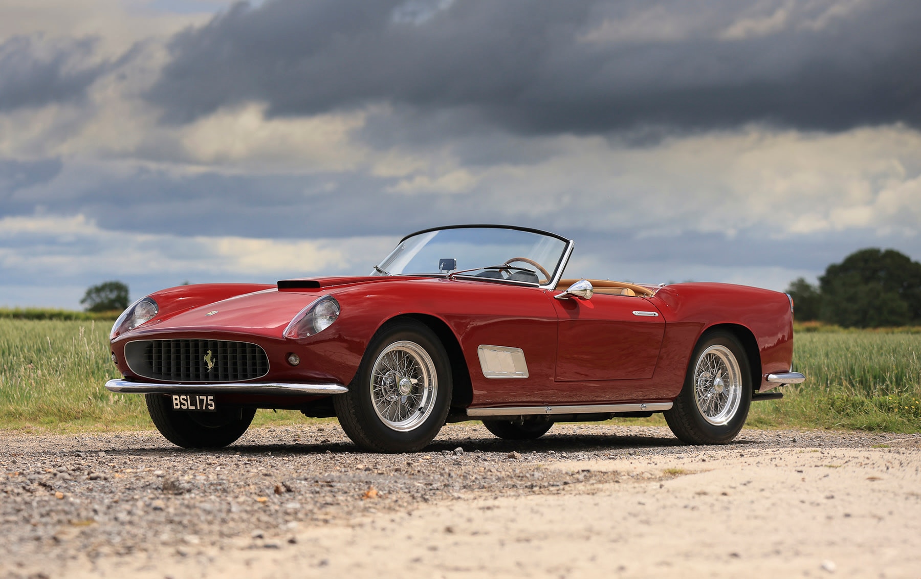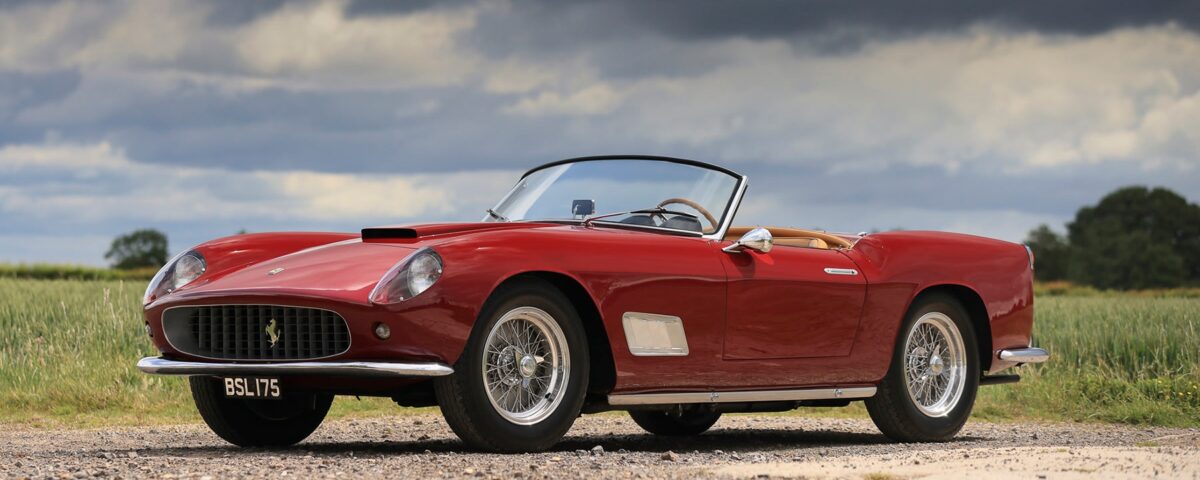 Una delle più attese e affascinanti è sicuramente la Ferrari 250 GT SWB Berlinetta del 1960, stimata tra i 9 e i 10 milioni di dollari. Nella sua livrea Rosso Rubino Chiaro e con portiere, cofano e bagagliaio di alluminio – caratteristiche che ne fanno lievitare il valore – fu consegnata a Losanna, in Svizzera, per poi essere usata da vari gentlemen drivers nelle gare in salita durante tutti gli anni 60. Dalla metà degli anni 70 ha fatto parte di varie collezioni negli USA, partecipando ai principali raduni e concorsi d’eleganza: secondo la documentazione ufficiale, conserva il motore originale (612F), il cambio (55⁄539) e il differenziale (229F), una combinazione sempre più rara tra le Berlinetta a passo corto. Nel lotto è incluso anche un assortimento di pezzi di ricambio e una documentazione completa, tra cui un rapporto dettagliato preparato dallo storico Ferrari Marcel Massini.