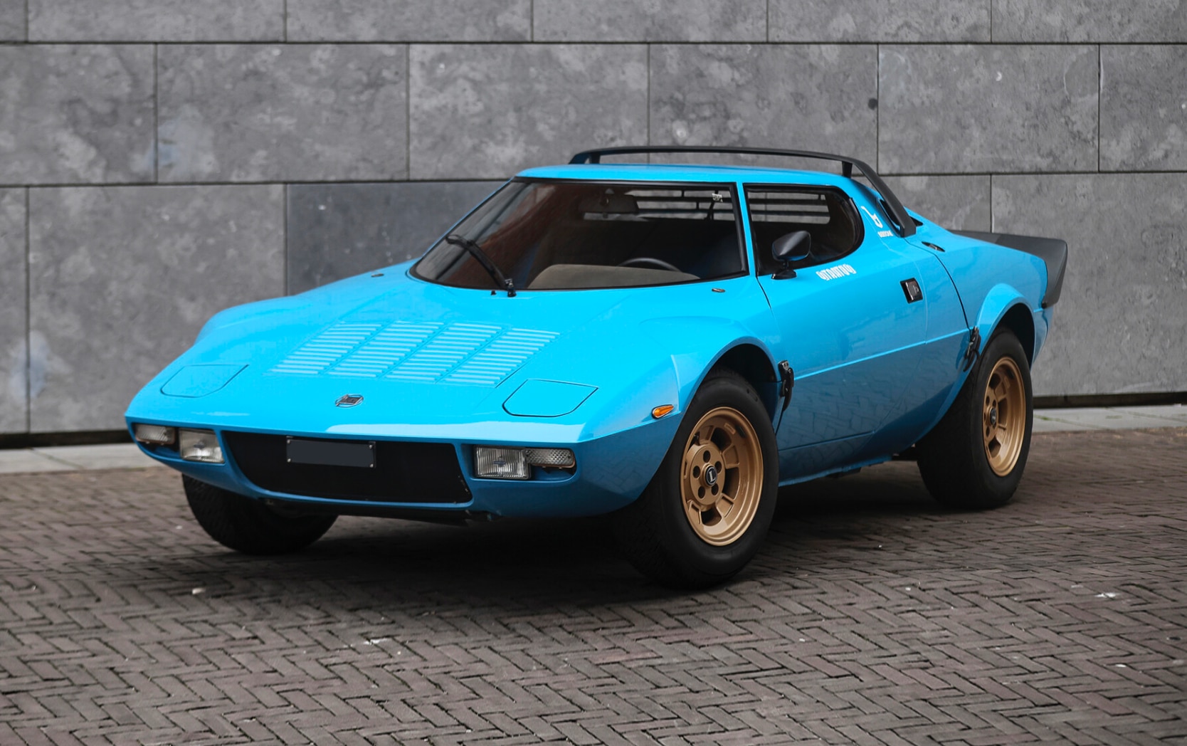Fresca cinquantenne è la Lancia Stratos HF Stradale, telaio #001932, completata da Bertone nel 1975 e con la carrozzeria rifinita di color Celeste (blu cielo), stesso colore della tappezzeria in Alcantara. Consegnata solamente nel dicembre del 1977 al famoso collezionista italiano Mario Righini, è rimasta in suo possesso fino a pochi anni fa e – oltre ad avere percorso solamente 2.000 km – conserva la targa di prima immatricolazione. La richiesta va dai 750 agli 850 mila euro ed è giustificata anche dalla presenza di alcuni elementi originali ormai rari, come i segni di ispezione sul telaio, i vetri Saint-Gobain e Glaverbel e i tubi Cavis originali. Non mancano il kit di attrezzi originale, il libretto di garanzia e quello di circolazione.