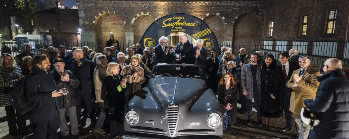 La serata ha visto inoltre il piazzale antistante l’antica chiesa milanese diventare il palcoscenico per un’esposizione di vetture storiche, appartenenti ai soci della Scuderia. Tra i modelli in mostra c’era anche un’Alfa Romeo 6C 2500 Pininfarina del 1947, appartenuta al cardinale Giovanni Battista Montini, futuro papa Paolo VI. Una presenza simbolica, che ha contribuito a rendere ancora più significativo l’omaggio alla storia e alla tradizione motoristica della metropoli.